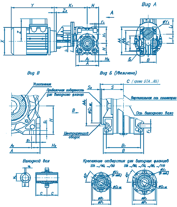Pазмеры двухступенчатых мотор-редукторов Varvel STA, TA